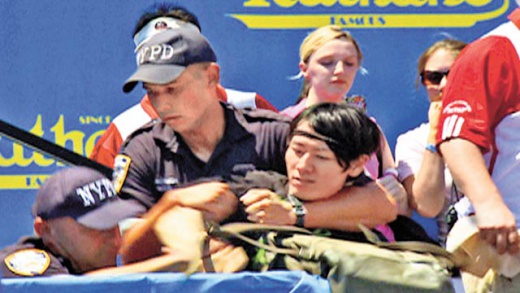 這是大胃王比賽的黑暗面,7月4日在布魯克林(Brooklyn)舉辦的年度熱狗大胃王比賽(Nathan's HotDog Eating Contest),有些粉絲因為沒看到前大胃王冠軍小林尊(Takeru Kobayashi)出現在台上,感到很失望。由於與大胃王大聯盟(Major League Eating)合約發生爭議,小林尊被禁止參賽。