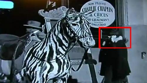 也許不是在那部影片內,而是在「馬戲團」(The Circus)DVD附贈的影像片段內。在1928年好萊塢(Hollywood)首映會外拍攝的這段影片中,一名婦女從右邊走到左邊,拿的一個像是手機的東西,邊走路邊講說話。