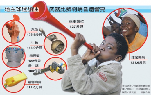 有人可能會期待今年在南非舉辦的世界盃主題曲會是Kwela音樂或是文達(Venda)或祖魯(Zulu)的部落歌曲,不過本屆世界盃最有特色的音樂是永無止盡又單調的巫巫茲拉,一種無所不在、中國製的塑膠喇叭,可發出連續的低音,吵到可以喚醒死人。