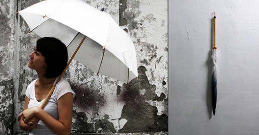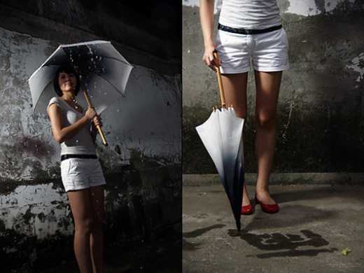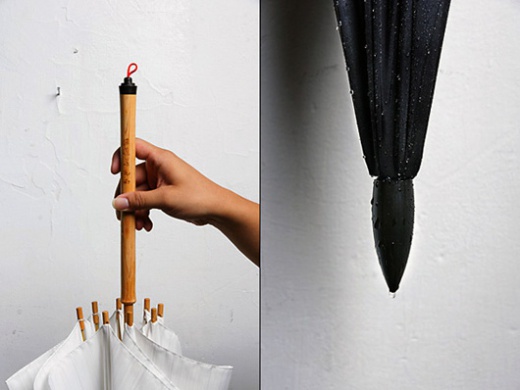▼下面這把傘可是來自台灣的創意,來自台灣科技大學的劉香伶的創意、來源來自小時候常常在寫的毛筆。整隻傘猶如一支超大size的毛筆,傘骨跟傘身也是木頭製的,當雨傘淋過雨收起來的時候,末端便會變成黑色,像是沾滿了墨一樣,傘前端是個橡膠的筆頭,類似小時候常用的自來水毛筆,雨停了之後在路上練練毛筆字,整個氣質大加分阿~