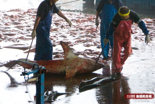 仍不斷有新捕撈的鯊魚 源源不斷的運進工廠