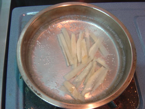 c煮薑絲(或片)小火煮把薑的辣味煮出來,老薑嫩薑都可以