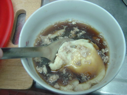 我個人是不喜歡吃全熟的蛋黃,所以裡面蛋黃還很咕溜咕溜的
