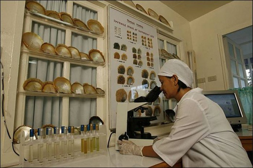 Philippines . The fragile natural pearls are treated like royal
