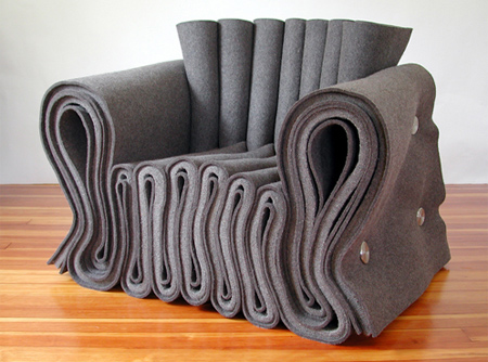 這摺得好整齊的毛氈椅子,設計從最佳材質出發,要讓人感受到其柔和溫暖的深刻印象。