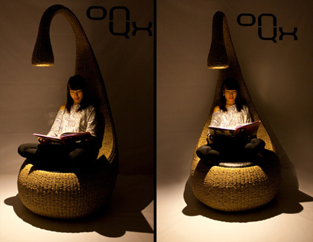 椅子加裝照明燈,將自己及書本聚焦,不需打開室內大燈,點一盞椅子燈,緩緩進入書香世界。