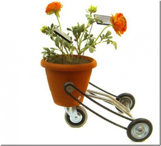 植物與太陽能電池板結合,可以讓它們在花園里四處移動,獲取陽光。