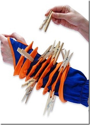 這是一種在晾曬衣服時,可以用來拿更多曬衣夾的手套。