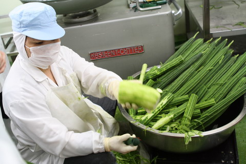 先來到處理蔬菜的地方,從來沒有看過澎湖絲瓜的Massi對它相當有興趣,還拿起來把玩,絲瓜讓他聯想到的是阿里山盛產的山葵。(OS:只有顏色像吧!SIZE差很多捏?)