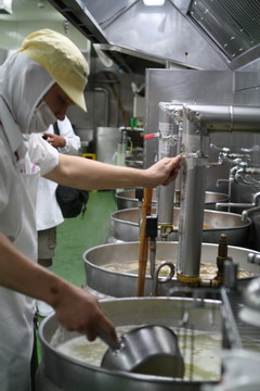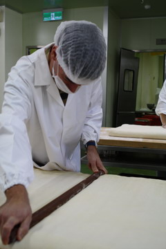 進入製作麵食的區域,這床好白好軟好舒服的棉被,是正在製作中的千層糕。