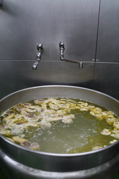 這裡熬湯,用的是像臉盆一樣大的鍋子。