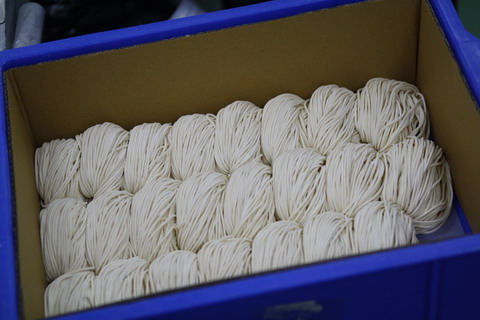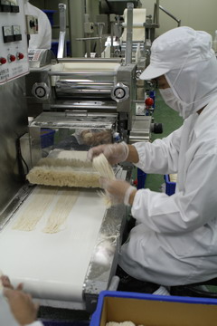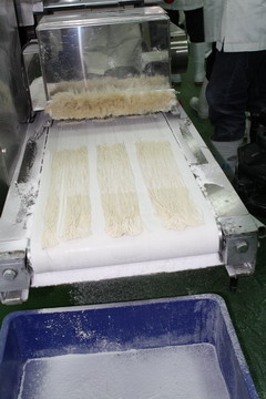 燈燈燈燈,厚厚的麵片瞬間變成超細麵條,實在是太神奇了!因為它一次出來有3把,所以機器開始運作之後,就以3人為一組坐定。