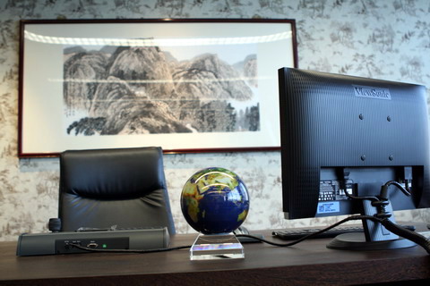 臨走之前,偷拍楊老闆的辦公室,偌大的辦公桌上,除了電腦之外,還有一顆會不停轉動的地球儀,如果想要擁有這個相當時尚的擺飾,據說在「青石」專櫃可以買得到。