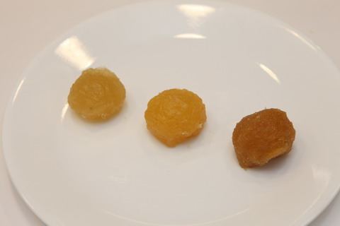 右、上、左分別是糖過的鳳梨、白蘿蔔和冬瓜,都有可能成為鳳梨酥的內餡。