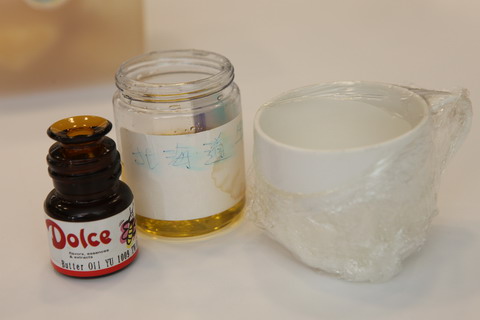 這三罐都是常用於鳳梨酥外皮的人工香精,左為奶油香,中為北海道牛乳香,右邊白杯子裡裝的是最貴的北海道牛奶濃縮香精。