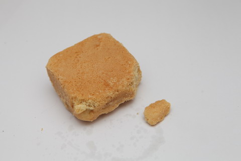這一家很可怕,一拆封就是這種破碎模樣,而且味道怪到根本不像鳳梨酥,連阿浪都忍不住吐出來。