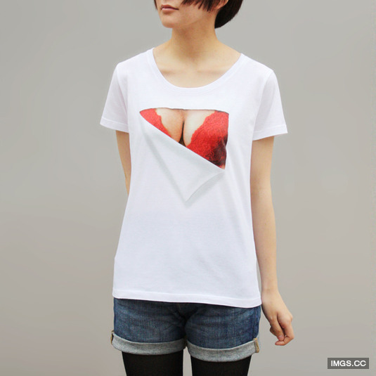 而像這件撕奶裝,其實類似的概念,有看過或玩過日本「妄撮」系列寫真、遊戲,也就是把女性外面衣裙褲部分撕裂,露出裡面內在美的網友,應該都不陌生才對。