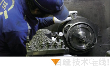 對鍋身、鍋蓋進行切削,使二者嚴絲合縫。在這一過程中,要不斷重複以0.01mm為單位進行測量然後切削的步驟