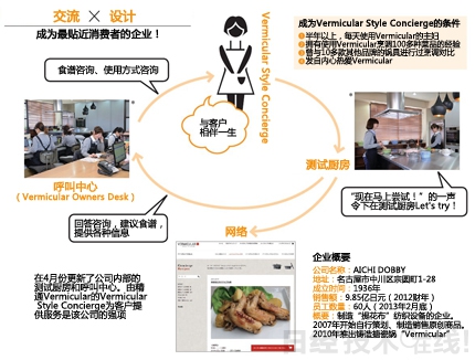 擔任禮賓(Concierge)需要滿足「擁有使用Vermicular烹調100種以上菜品的經驗」、「曾與10款以上他品牌的鍋具進行過烹調對比」等4項資格條件。既是主婦又是Vermicular專家的禮賓現在共有4人。當客戶聯繫呼叫中心諮詢時,隨著「現在馬上在公司嘗試!」的一聲令下,禮賓要立即進行實踐。把在內部測試廚房嘗試的結果反饋給諮詢者。