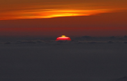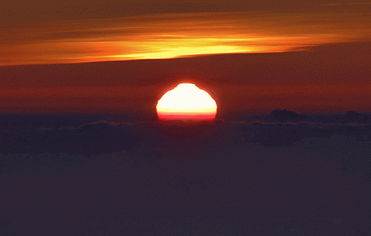 How could the Sun turn green? Difficult to observe, the momentary green flash above the rising or setting sun has been documented as a phenomenon caused by the atmospheric bending or refraction of sunlight. Like a weak prism, the Earth's atmosphere breaks white sunlight into colors, bending red colors slightly and green and blue colors through increasingly larger angles. When the sky is clear, a green flash just above the sun's edge can sometimes be seen for a second or so, when the sun is close to a distant horizon. Still, from a site atop Mt. Autore (altitude 1,850 meters) in Italy astrophotographer Danilo Pivato captured this dramatic green flash movie. The time between frames varies from over one minute in the beginning to about one second as the flash becomes visible.