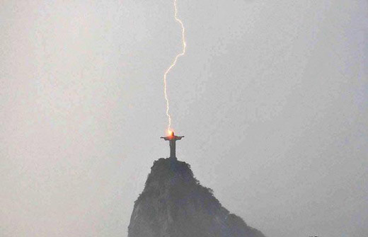 2月10日,巴西裏約熱內盧基督救世主雕像遭遇雷擊。