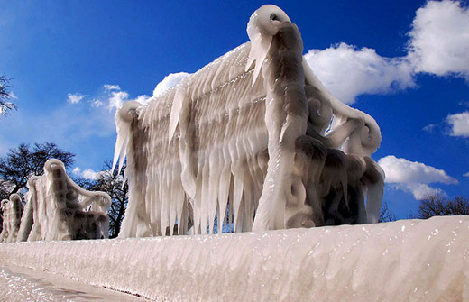 2月17日,希臘北部一個小城,戶外的長凳被冰覆蓋。