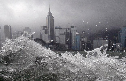6月25日,香港維多利亞港經受颱風侵襲。