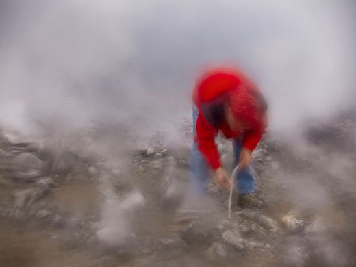 18 這是皮埃爾‧伊夫‧布爾格在火山坑底部收集逸出的氣體。 這些樣本將被送給達里奧‧特達斯科進行研究,他最近被聯合國項目事務辦公室命名為自然風險分析與防範項目的負責人。