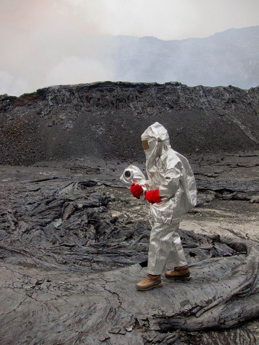 25 第一次與熔岩湖親密接觸的格魯內瓦爾德回憶道:“我被熔岩湖表面的壯麗景象吸引了,於是想把它記錄下來。此刻的我已經失去了時間概念,也把滾滾熱焰置於腦後,… 突然,無線電話告訴我,該離開了,因為我的活動位置過於靠前了。”