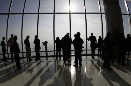 Other world records for Burj Khalifa include the highest occupied floor in the world, at over 550 metres (1,800 ft); the highest outdoor observation deck in the world – At the Top on Level 124; and the tallest service elevator, which travels to a height of 504 metres (1,654 ft).
