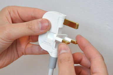 Choi's plug is just 10mm wide when folded. To unfold it, the two live pins swivel