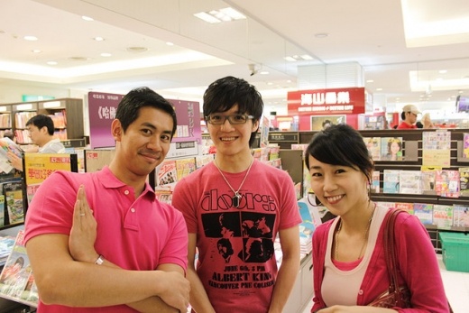 我跟小男友在夜市看過一次幾個男生調戲大腳桶女孩(大腳桶是師大或其他夜市的飲料攤,有名的是工讀女生都好甜美),這幾個男生推來推去,最後一個比較嬌小虛弱的男生被推到大腳桶女孩面前,帶著不正經的笑說:『小姐,我是被派來跟你搭訕的,可以給我一個機會嗎?』