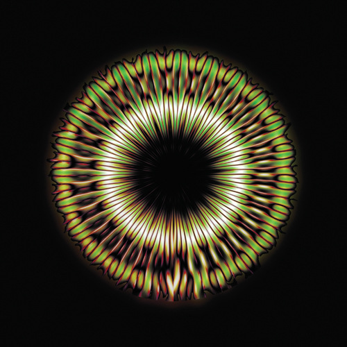本圖同樣是小須鲸歌聲的可視化效果圖,但是此前的線性圖案已被繪制成一圈圈的圓環形。費舍爾有時還會對自己獲得的聲音圖片進行再制作,比如他有時将聲音圖片層層堆疊從而産生花朵圖案,有時将聲音圖案進行裏外翻轉或放大,從而産生特定的圖案效果。不過費舍爾表示,他更喜歡聲音的原始形狀。本圖所示的聲音由美國加利福尼亞州西南漁業科學中心的研究人員錄制。