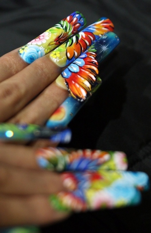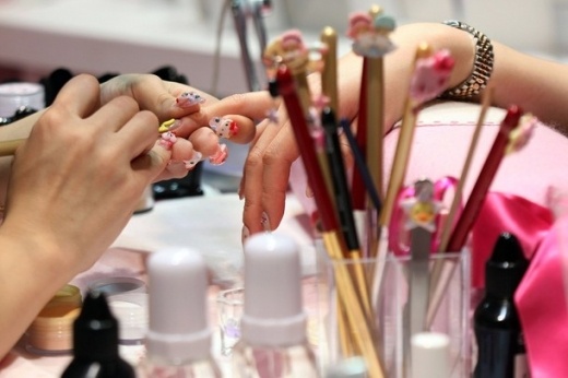 A nail artist decorates visitor's nails