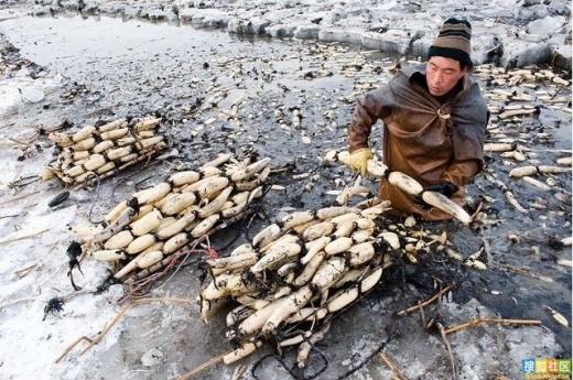 以前,從來不知道冰天雪地還有人下水挖藕,直至看到了相關報道,深受震撼。