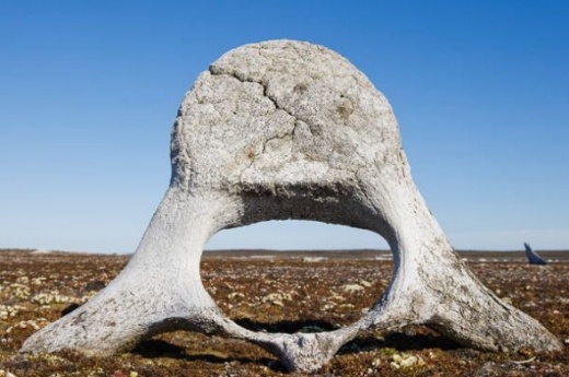 一塊鯨魚椎骨 斯瓦爾巴特群島千島列島苔原上的一塊鯨魚椎骨。