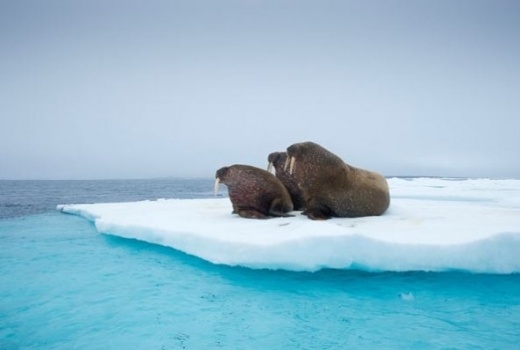 一群海象 一群海象趴在瓦赫伯格島的冰面上。