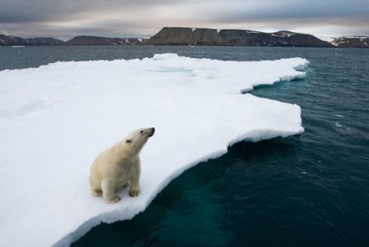 16.北極熊坐在融化冰山上