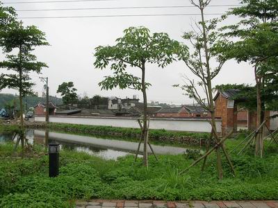 古厝前的半月池(風水池、案前池)---具有防火、養魚、洗衣 等功能。