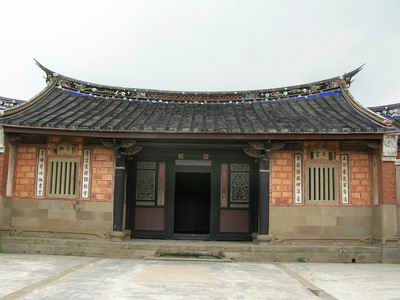 李騰芳古厝---是兩落四護龍的建築,第一、二落(進)屋頂有燕尾翹脊的硬山形式,屋脊剪黏華麗。所謂「落」,就是中央橫向,所謂「護龍」,就是左右直向,兩個橫向加上兩個直向,就是一個口字, 古厝是由前面的「三合院」與後面的「四合院」合併。格局:外埕→內埕→外庭→門廳→中庭→廳堂