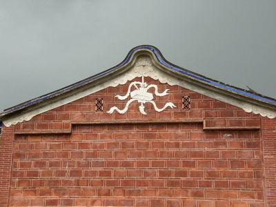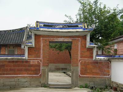 龍邊門屋---由外進入古厝,是馬背脊小門屋,上題:環流列翠,墀頭上有竹子、菊花圖