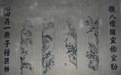 門廳凹壽銼瓜筒下的書法、水墨畫