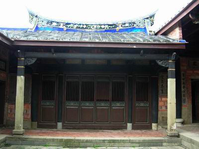 寶藍色線條點綴於屋頂、圍牆四周,是一典型紹安客家建築,門廳與正廳的大木結構是全宅的木作最為精細的部份,木雕精美。因李騰芳精擅書畫,故室內有相當多的書畫裝飾。