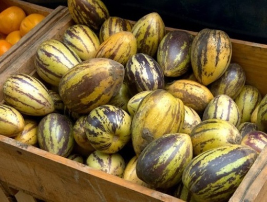 刺角瓜 很好奇裡面的口感感覺粘糊糊的~ 表皮堅硬、凹凸不平,肉質細膩多籽,像黃瓜一樣呈凝膠狀,口味清甜,吃過後,嘴裡會有輕微的餘香。