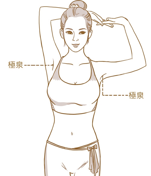 一說起腋窩,很多朋友會想到狐臭,那種難聞的氣味就是腋窩這口「排汙井」所散發出來的。腋窩處的極泉穴是心經的重要穴位,可以祛除心臟的火鬱毒素。所以你應常常去按揉這個地方,以疏通這口「井」。平時容易犯急、暴躁,這是心火大的表現。揉一揉心窩,打通了心經,人就平靜下來了。
