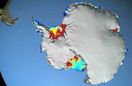 在54個冰棚的地圖資料中,有20個冰棚(多數位於西南極洲)的冰層因下方流經的暖洋流而融化,進一步加速內陸向大海的冰川流動補注這些薄冰棚,使得更多的冰注入海中加速海平面上升。