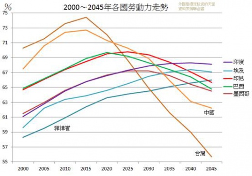 1970∼2000年,台灣擁有源源不絕的年輕勞動力,吸引了外國企業的技術輸入和資金投資,上個世代的企業家順著這些商機闖進市場,幾乎所有產業都有利潤,但這些榮景趨勢的前提是,台灣有廉價勞力,所以外國資方願意進駐,沒有外國資金和技術,根本不會有當時所謂的「經濟奇蹟」,但全球化的資本主義下,外國資金和技術投資會移動到比台灣勞力廉價的國家,台灣不可能永遠年輕,墨西哥、巴西、印度、印尼、菲律賓未來擁有上升的勞動比力,世界上會一直有比台灣更年輕的勞力輸出國,反觀中國和台灣在2015年以後,只會加快老化速度,所以不能永遠維持在低報酬率的產業水平上競爭,與其讓舊有企業繼續以上一個世代的營運思維來經營,不如幫助企業轉型,進入適合下個世代的產業型態。