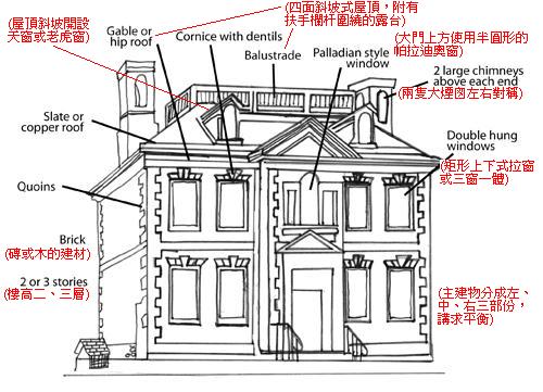 喬治亞復興風格的特色圖解∼紅字是我加的