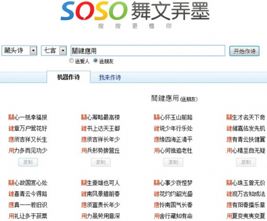 關鍵應用.... 新增 SOSO舞文弄墨 - 藏頭詩產生器