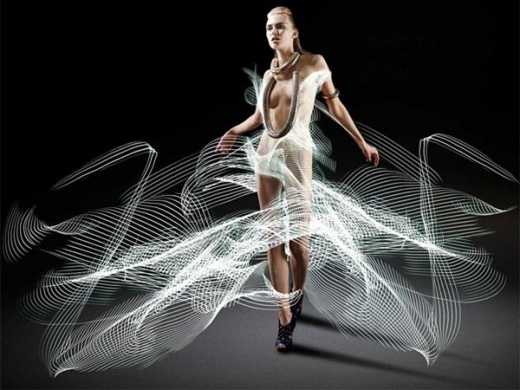 其實這是倫敦設計師 Atton Conrad 利用光繪塗鴉 Light Painting 所創造出來的光紗,這樣別出心裁的設計令人為之驚豔。